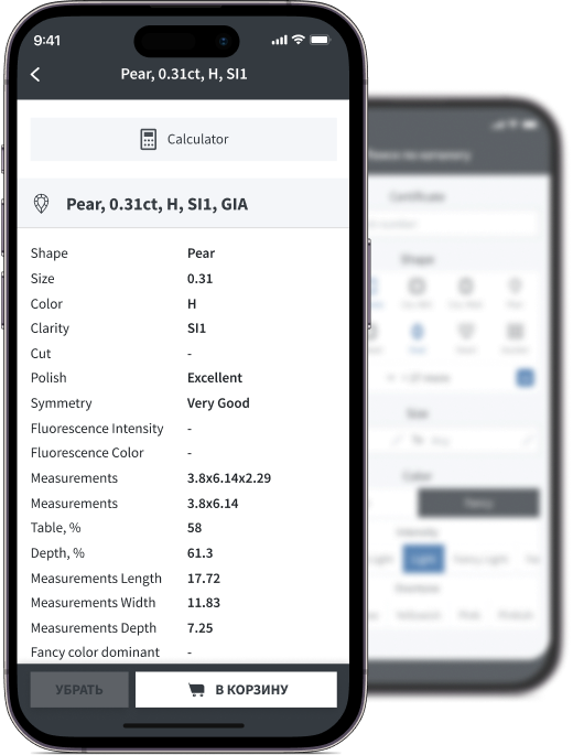 В приложении реализована проверка сертификата бриллиантов и драгоценных камней. По выбору из 3 ведущих лабораторий: GIA, HRD, IGI и номеру сертификата можно проверить его подлинность и характеристики камня: вес, цвет, чистота, качество огранки,форма и номер самого бриллианта.