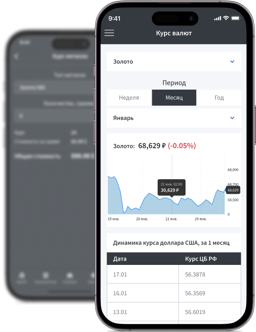Для удобства пользователей создали разделы с курсами драгоценных металлов и валют, в которых реализовали интеграцию с Центральным Банком РФ для получения курса за выбранный промежуток времени.